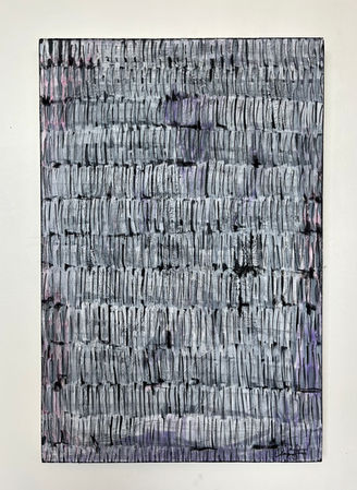 “Stillness in Motion” acknowledges the importance of pausing, embracing silence, and fully experiencing the present moment. Through rhythmic and resonant visual language, I explore the tension and transformative potential that arises from deliberate pauses and repetitive gestures. This new body of work examines the delicate interplay between stillness and motion. Engaging in a somatic process, I embark on a journey of self-discovery that opens up deep layers of emotions, memories, and traumas. With repetitive gestures, I am able to create a space where stillness and motion harmoniously coexist, inviting viewers to immerse themselves in the contemplative experience. Within this creative space, themes of mental health, trauma, memory, ritual, and meditation are examined, as well as the tension and balance between chaos and order. Layer by layer, the work becomes a sanctuary that offers momentary relief from tensions, traumas, and unconscious actions. This space offers mindfulness whenever it is needed. Life is fast, and my mind often races to try to keep up. The repetitive gestures in my practice provide me solace and clarity, offering a much-needed pause amidst life’s chaos. It is actually within the motion itself that I find the ability to pause, breathe, reflect, process, and think clearly. It is stillness in motion. My mixed media work on canvas utilizes materials such as acrylic, oil, ink, graphite, and charcoal. My practice thrives on the foundation of curiosity, openness, and experimentation. Through deliberate gestures, I discover mindfulness, while the array of marks captures a visual record of the ever-changing landscape of my state of mind. This approach forms an intricate visual tally of my lived experiences. My environment and upbringing, particularly the overcast tones reminiscent of the Pacific Northwest, and my background in intaglio printmaking, also influence my visual language and palette. The significance of scale gives me boundless space and time to enter the flow state, and as viewers engage with the repetitive marks, layers, textures, and media, I hope that they can encounter moments of transcendence and stillness.